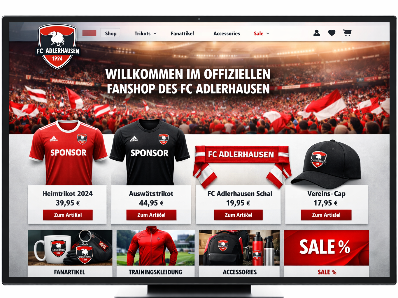 Wir gestalten euren Fanshop modern, übersichtlich und passend zu euren Vereinsfarben und Logos. So wirkt euer Verein online professionell und zieht Fans noch stärker an.